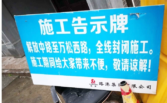 上午9时许,记者来到解放中路与邮电北路的交叉路口,路口的车辆并不多,除了被封闭施工的邮电北路,其他3个方向的车辆都各自有序通行,并没有发生拥堵的状况。路口放有一块“施工告示牌”提醒市民:“解放中路至万松西路,全线封闭施工。施工期间给大家带来不便,敬请谅解!”