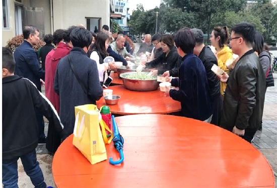 洗米、剁菜、切肉……,安阳街道广场社区在宏瑞大厦举办“爱心芥菜饭,温暖邻里情”活动。一大早,宏瑞大厦就聚集了众多居民前来等待一尝美味。当一锅锅芥菜饭出炉的时候,居民们井然有序排起长龙,等待领取。一个多小时,1000余份芥菜饭分发一空。