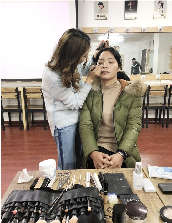 学员周飞盈羞涩地举起了手。她是一名全职的家庭主妇,平时对自己的打扮不是很在意:“我一般都不会化妆,出门素面朝天,这次希望能发现不一样的自己。”