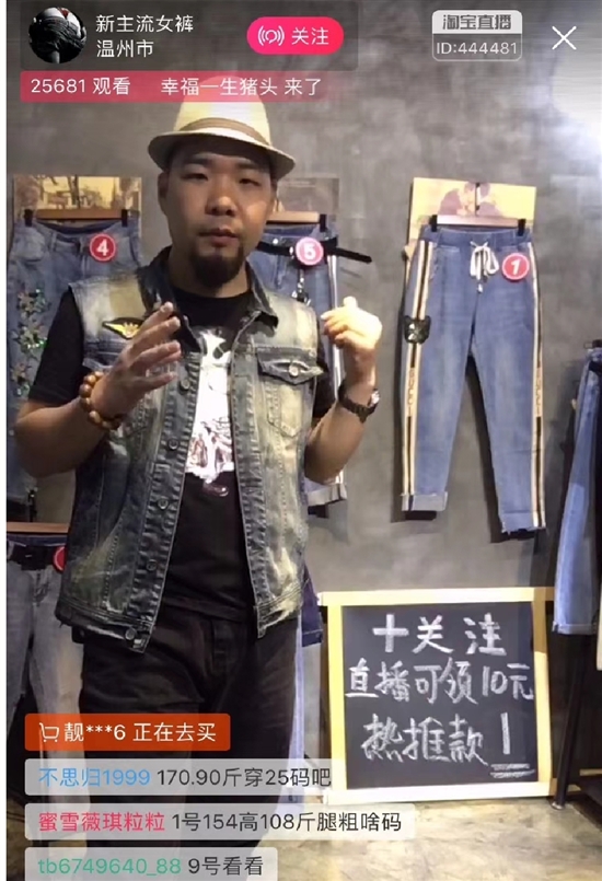 徐启迪做淘宝生意已经六七年了,但是开通淘宝直播才一个来月的时间。每晚20时,他会准时上线直播,在4个多小时的直播时间里,不停地跟粉丝互动,耐心解答各种提问,并介绍各种款式牛仔裤的颜色、尺码、面料、制作工艺等细节。记者在他的淘宝直播页面上看到,目前他拥有13000多名固定关注粉丝,已经直播将近30场。