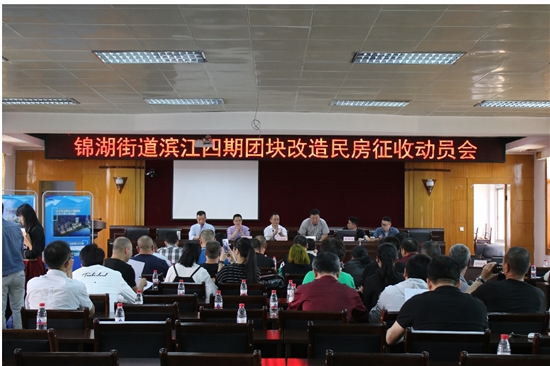 本报讯(记者 林晓)5月4日下午,锦湖街道召开滨江四期团块改造民房征收动员大会。街道党工委书记刘剑波、党工委委员赵展翔、办事处副主任沈晓光,攻坚组成员、征收代理公司工作人员,西门、小横山、进星村村干部以及全体已登记房屋拆迁户共60余人参加。
