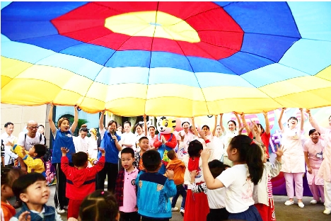节日当天,市人民医院儿童医院联合社工部在医院的各个角落给孩子们准备了惊喜。在儿童医院门诊楼前,护士们带着一群志愿者在做洗手操;另一边,志愿者带着小患者一起玩泡泡,门诊大厅里笑语不断。“平时来医院看病都是比较难受的,希望通过舞蹈,能传递更多欢乐给小患者。”一位志愿者表示。活动现场,前来看病的家长、孩子都被志愿者们的热情感染了,他们热烈地谈论着,还不忘在旁边鼓掌。洗手操一结束,都纷纷跑向前合影。