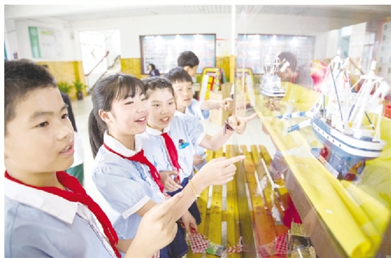 “流动少年宫”为学生们送上欢乐展示馆、欢乐科技馆、欢乐运动馆、欢乐美术馆、欢乐游乐园五大类十多个趣味盎然的体验式活动,内容涉及文学、书画、体育、科技等方面。此次“流动少年宫”活动结合“6·8”海洋宣传日,将主题定位“奋进新时代·扬帆新海洋”,让孩子们在游玩的同时,学习有关海洋知识。现场,布置了海洋灾害防御知识、捕鱼知识以及保护幼鱼资源等关爱海洋的科普展板,学生们认真地听工作人员讲解。