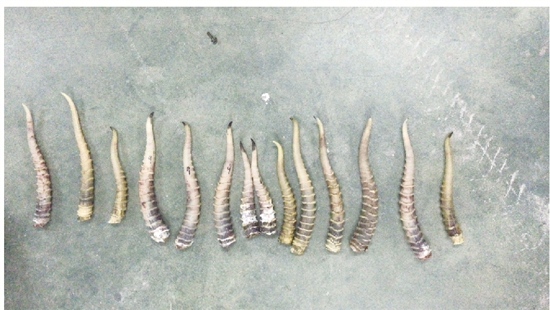 2月8日以来,专案组多次收网抓捕,先后抓获犯罪嫌疑人阮某、吴某甲、黄某等,同时查获羚羊角62根、熊胆4个等涉案物品。