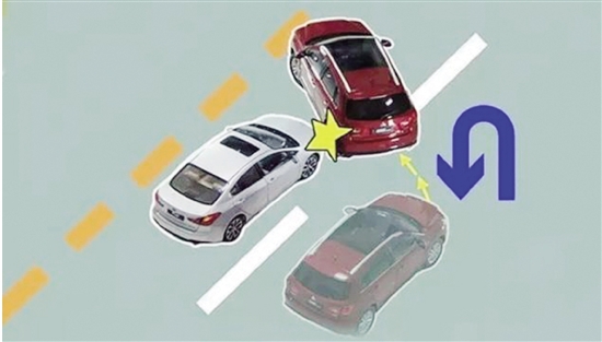 与掉头的车辆发生刮蹭