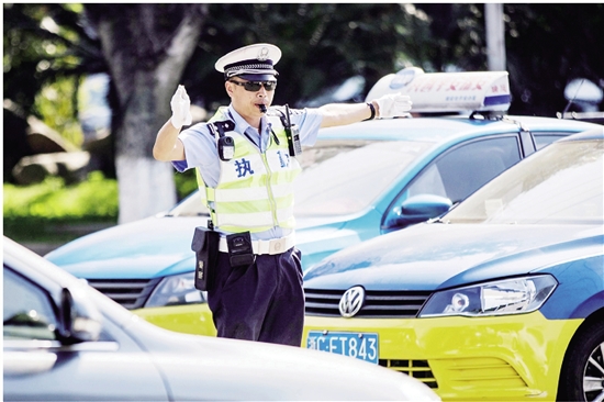 “执勤半小时,衣服全湿透。不过年年如此,早已习惯!” 尽管每天都要顶着烈日挥汗如雨,他还是笑着表示从警七年,自己早已习惯了在高温下作业,“交通秩序需要我们在路上维护,为了大家的安全,这是我们的本职工作!”