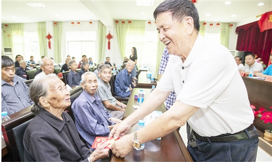 “真好!每年都很关心我们,给我们送红包、月饼。”今年97岁的黄斗妹老人耳聪目明,接过郑进锐派送的红包时还有些不好意思。