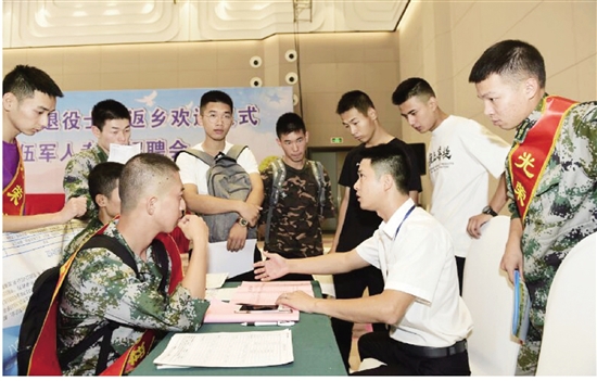 本报讯(见习记者 林露露/文 记者 陈立波/图)日前,我市举行2018年退役士兵返乡欢迎仪式暨首届退役士兵专场招聘会,吸引200名退役士兵到场。