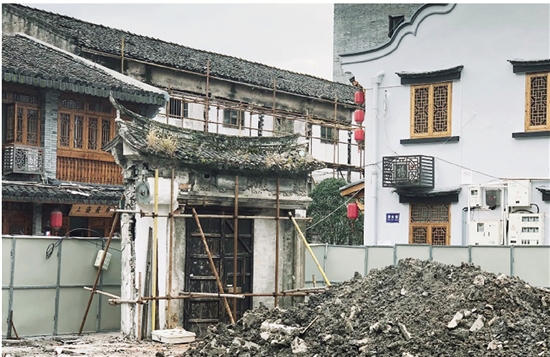 本报讯(记者 潘虹 通讯员 何子胜)“那屋顶,那破旧的帽子,它已戴了很多年,虽然那顶帽子,也曾被风的刷子刷过,但最终还是从污垢里钻出了草……”近日,位于公园路北侧的鲍宅地块原拆原建工程开工,鲍宅主体建筑进行拆除后,主体较为完整的破旧门坊孤单而倔强地立在路旁。