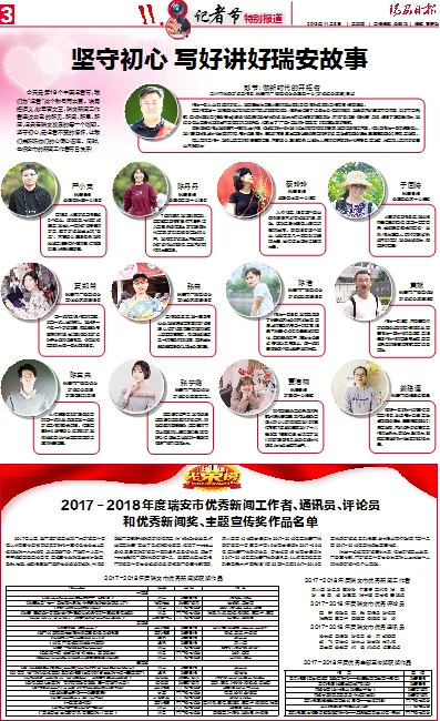 2017-2018年度瑞安市优秀新闻工作者、通讯员、评论员