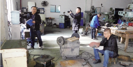 11月15日,浙江万里安全器材制造有限公司车间内,陆续有安监执法人员前来“执法检查”。