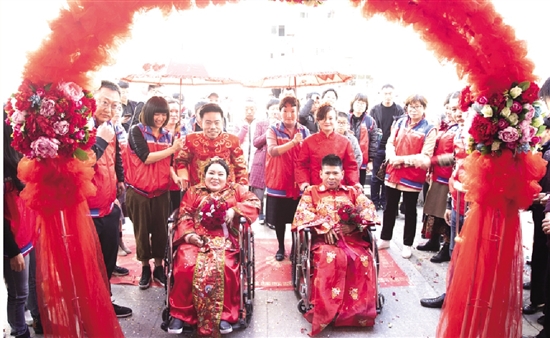 “阳光鹊桥”为5对残疾人共同举办婚礼