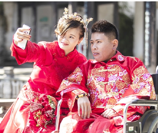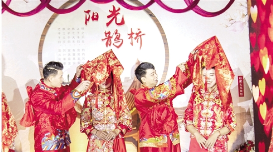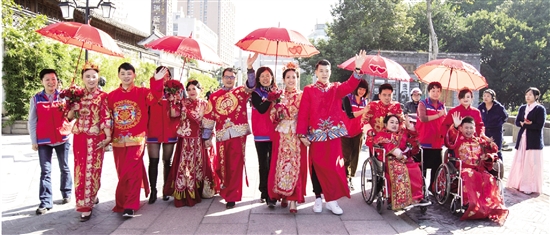 残疾人由于自身的原因,他们很少融入和参与社会活动,在爱情和婚姻之路上也走得异常艰难。我市创造性推出了“阳光鹊桥”残障青年婚恋平台,为单身的残障男女青年牵线搭桥。12月3日是第27个“国际残疾人日”,11月24日,市残联举办了第二届“阳光鹊桥”集体婚礼,为5对新人举行中式婚礼。