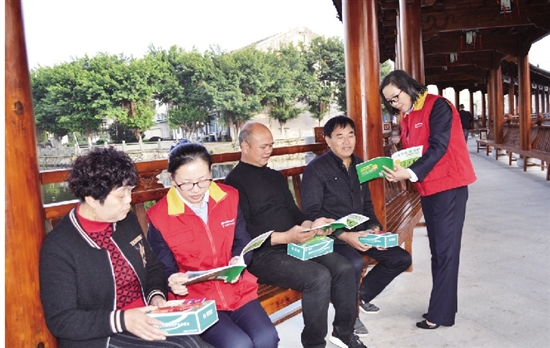 本报讯(通讯员 林德琢 记者 金汝)今年12月4日是第五个国家宪法日。日前,国网瑞安市供电公司“云江”红船党员服务队志愿者到南滨街道林垟社区,开展法律法规宣传活动,增强全民法制观念。