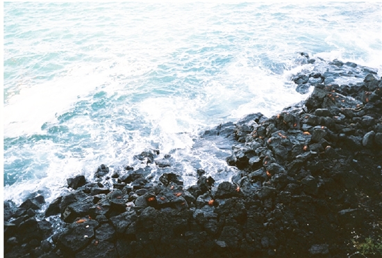 第二天早上很早就出发了,回到机场的那个港口再继续坐游艇一个多小时前往深海。简单的教学之后就可下水。但是仍要换成橡皮艇继续往深海去。即使天气晴好我却仍旧害怕,自己一个人围着橡皮艇在海水里磨蹭了半小时,一低头就是满满地恐惧,那么多鲨鱼在水底一动不动,我甚至在脑海里打出了中国某女生命丧南太平洋的字样。最后我还是选择上了橡皮艇直挺挺的僵硬着身子晒着太阳。再次回到游艇的时候我迫不及待的脱掉那一身紧巴巴的潜水服,吃着船长递给我的西瓜,看着大海,仙人掌和远处的火山。我觉得这样比较适合我。但舒适过后往往就会有一些悲惨的结尾。全身都被热辣的太阳晒伤,脸上还起了水泡,回到旅店我就很郁闷地把带来的面膜全都贴上了,仍旧火辣辣的,两坨高原红不散去。一个人缩在旅店的床上,听着外面的海浪声,伴随着轻微的疼痛感慢慢地睡过去。