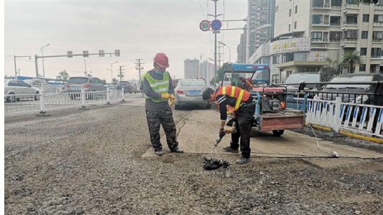 与该处十字路口同时完成维修的还有隆山东路上新桥头村桥梁桥面的沥青铺设。“此前桥面坑坑洼洼,很怕出意外,现在重新铺了沥青,路面平坦了,放心多了。”骑车经过的村民潘先生说。