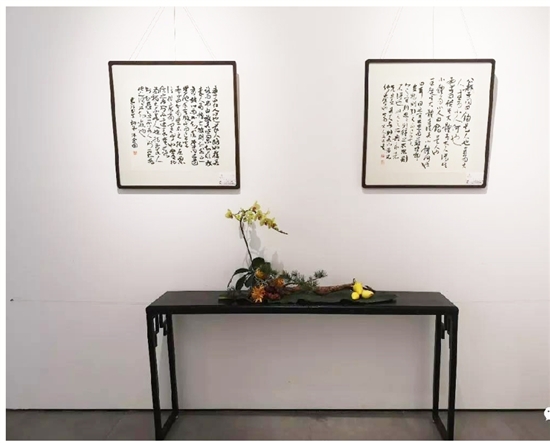 作为一种生活美好之表达,书法和插花艺术源远流长。真正称之为艺术,书法可能要上溯到秦篆汉隶,东方缘起的插花可能要从隋唐的佛前供花论起。名为金国书法展,实为夫妻艺术展。金国、秋娥伉俪执手如此高古,实在令人艳羡。得二人为友,何尝不是精致人生的一种惬意。这也许就是当初孟母“择邻处”的那个寻常百姓家吧!