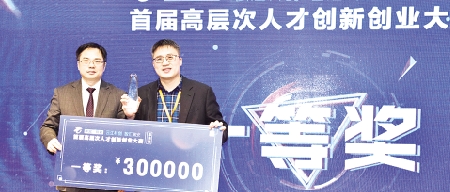 本报讯(记者 陈京子/文 王鹏洲/图)1月11日,中国·瑞安首届高层次人才创新创业大赛总决赛巅峰对决在浙南人力资源服务产业园上演。20个优秀项目经过激烈比拼,最终“基因工程特异性酶的生产和应用”项目问鼎本届大赛冠军,获30万元大赛奖金(如图)。