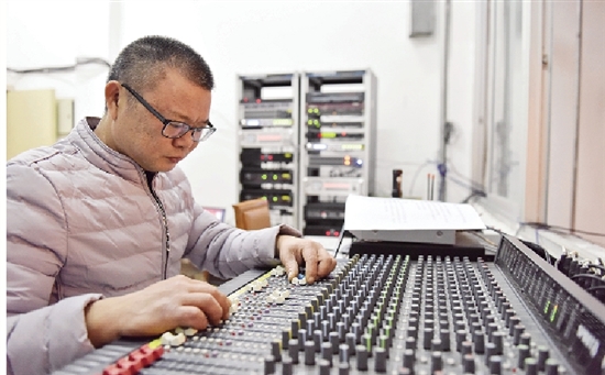 两会调音师、播音员认真工作