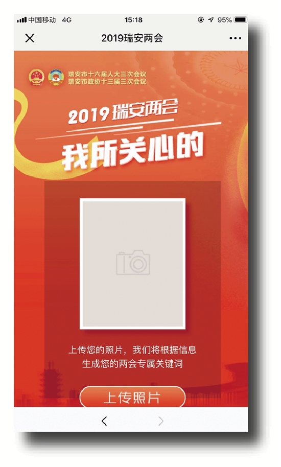 为了迎合现代人快节奏的生活方式,瑞安日报新媒体中心制作“我的两会”,带大家迅速浏览自己想要了解的报告内容。大家只需上传自己的照片,就会生成专属本人的政府工作报告,据统计,参与人数达到上万人次。