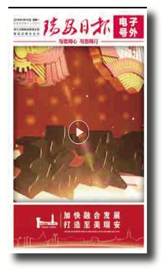 瑞报号外,也是瑞报两会融媒报道的新手段。在瑞安日报版面上,嵌入两会短视频,通过手机端展现,画面快速剪辑、声音铿锵有力……政协、人大开幕会和人大第二次全体会议,均是短短10秒的视频,获赞无数。号外突破了传统意义上纸媒的概念,瑞安日报不仅仅是一张静态的报纸,更是一个能说会动的电子产品。