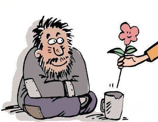 小儿眼尖,忽而跑到了行乞老头前面,见状,便大声朝我喊了起来:“老爸,带零钱了吗?给我一元钱!”无疑,儿子的喊话是没想过我拒绝的,也是不容我拒绝的。我走过去,从口袋里掏出一个硬币,故意不闻不问就递给了他。儿子略带紧张,蹲下身来,小心翼翼地把硬币放在那个旧碗里,而后,转过头来,露出了羞涩的笑容。儿子从见到乞丐,到朝碗里放进硬币,整个过程是那么自然,一气呵成。从他羞涩的笑容里,我分明看到了他的愉悦、自豪,更重要的,是盛满了孩子的纯真、善良和发自内心的爱!当儿子回眸看我时,我立即给孩子回以赞许的微笑。我知道,儿子想从我的表情里,寻找我对此事态度的答案。此时,纠结这个乞讨老头到底是不是骗子已不重要了。