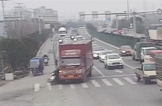 2018年1月29日下午,刘某驾驶重型厢式货车,行经瑞安大桥接线与望东东路交叉路口地段右转弯时,一辆二轮摩托车企图从车右侧超越行驶,结果被撞倒在地,驾驶员田某被货车右后轮碾压,最终酿成摩托车车毁人亡的惨剧。