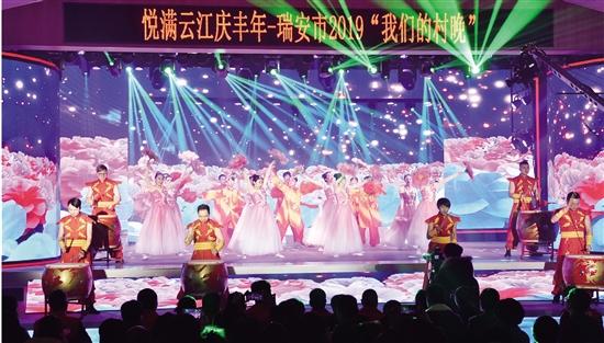 本报讯(记者 潘勤勇 王鹏洲 池轩哲)1月24日晚, 悦满云江庆丰年——瑞安市2019“我们的村晚”在曹村镇东岙文化礼堂举行。本次村晚节目精彩纷呈,吸引了近200名本土演员参与,其中精心编排的越歌伴舞《瑞安颂》、鼓词演唱《锦绣中华》、音乐快板《飞云江畔赞瑞安》等节目,别具地域特色和浓郁乡土气息,博得了观众热烈的掌声。市领导陈胜峰、叶艳、方小梅等观看晚会。
