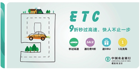 好消息来啦,农行为有车一族,量身定制超实用的用车宝典!现在办理农行ETC浙通信用卡,设备免费、9折高速、1元洗车等多项福利等你来拿,活动时间为即日起至12月31日。