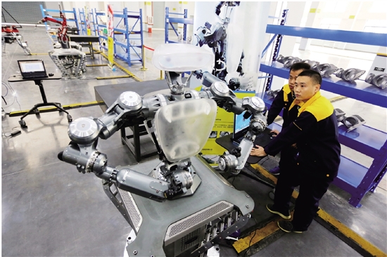 在海尚集团的设计研发中心,数款机器人正优雅地舞动双臂,而每台机器人上面都安装着海尚集团研发的矢量摆线减速机和机器人控制系统。