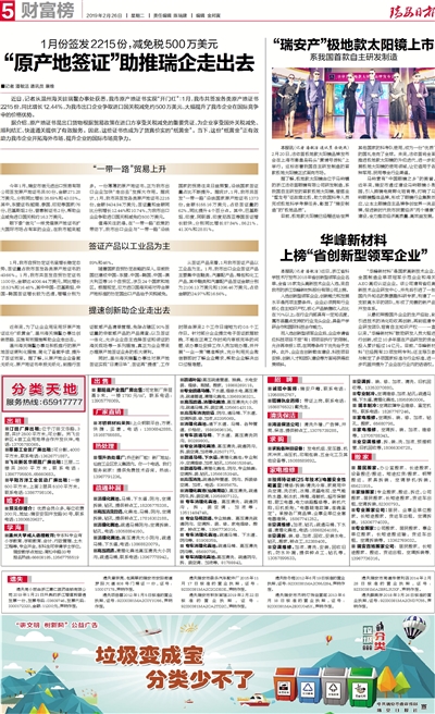 “原产地签证”助推瑞企走出去