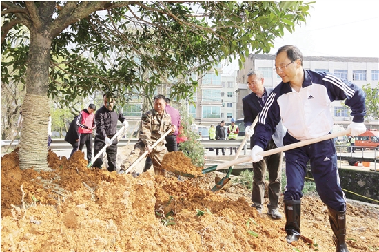 阳春三月,万物复苏,正是植树的大好时节。挥锹铲土、扶正树苗、悉心培土……14时40分许,市委书记陈胜峰等来到植树点,投入到植树活动中,齐心协力种下一株株树苗。他一边种树,一边询问相关情况,要求持续开展“八美八化”行动,争创国家园林城市,让优美环境惠及群众,并一再叮嘱大家要落实责任,加强管理,努力做到栽植一片、成活一片、绿化一片。