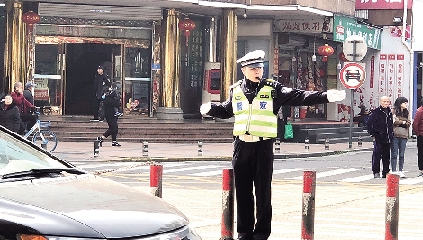 当天7时30分,记者来到市实验小学东北门附近路口。此时正是早高峰,又是学生上学时段,路上早已车水马龙。在车流中,记者看到阮杰新的身影。疏导交通、拦下违规车辆、交通规则教育……他正有条不紊地指挥车辆通过,确保人行道上的学生及家长安全通过。