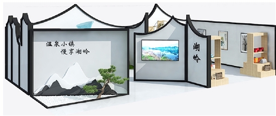 展厅分为“创意温泉”与“文创产品区”两大版块。“创意温泉”版块以湖岭特色建筑风格与创意温泉造景相结合,突显瑞安唯一并且具备浙江省温泉资源“AAAAA”级命名标准的温泉。现场,市民还可体验一下用温泉煮鸡蛋。“文创产品区”以“传统与创新”为主轴展示湖岭镇特色文创产品。通过传统湖岭牛肉、生态葛根粉等土特产的品牌包装与设计,湖岭牛文创产品的开发与探索,引领前来观展者在传统农业产品中寻找文化印记,发扬湖岭文化,带动产业生机与活力。