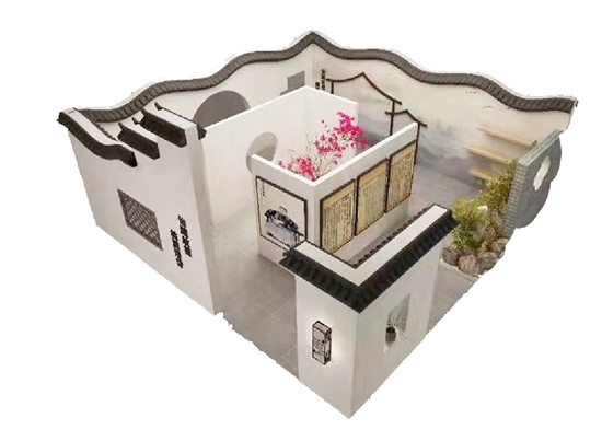 潘岱馆围绕“诒让故里”和“桃源潘岱”铺展开潘岱的动人画卷。该展馆以水墨丹青为主色调,同时融入美艳的桃花,一方面向观众展现古色古香的孙诒让故居,另一方面更是向现场观众展现潘岱的人文历史和自然风情。
