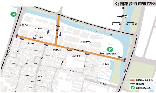 答:为保证公园路形成闭合的纯步行街区,市名城建设中心将在主要街、巷、弄口设置多处隔离卡口设施,分别是公园路东口(虹桥路口)、西口(邮电路口)、北口(万松西路口)、南口(大沙堤口);南侧的太平石巷、城中巷、小沙巷;北侧的港瑞·新玉海、心兰苑两个团块出入口等位置。