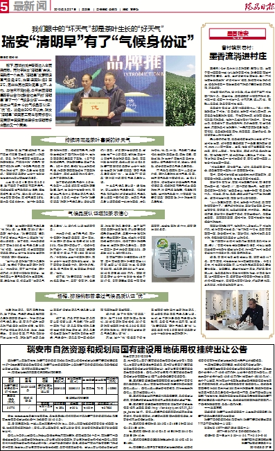 瑞安“清明早”有了“气候身份证”