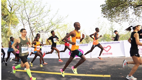 本报讯 3月30日上午8时30分,“正星杯”2019海宁国际追潮马拉松赛在浙江海宁盐官旅游度假区的百里钱塘正式开跑。来自中国、美国、德国、澳大利亚、肯尼亚、埃塞俄比亚等14个国家的1400多名马拉松爱好者,迎着和煦的春风,奔跑在这条浙江省最美绿道上。