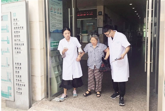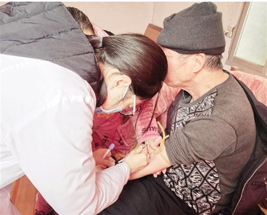 “阿婆,你来了,今天感觉有没有好点?”3月底的一天清晨,78岁的吴奶奶又来到玉海街道社区卫生服务中心输液室,老人独自一人拄着拐杖,颤巍巍地走来,身边没有亲人的陪伴。护士陈潇靓一见到吴奶奶,赶紧迎上前去关切询问。“好多了,真不想天天见到你!”吴奶奶嘴上倔强,却紧紧握住陈潇靓的手。“那你要多运动,注意饮食!”这句耳熟能详的话让吴奶奶热泪盈眶。吴奶奶是县前社区一位独居老人,也是玉海街道社区服务中心的家庭医生签约服务对象。作为中心家庭医生签约服务团队的一员,陈潇靓每隔几天就要上门巡诊,吴奶奶早把她当成家人一样。在整个就诊过程中,陈潇靓搀扶着吴奶奶入座,又为她按摩腿脚,在吴奶奶挂点滴时,又怕她寂寞,一有空就陪她聊聊天,打发时间……她们两人的相处,不似医患,倒更像是祖孙间的互相陪伴,守护着医患之间平凡又温暖的情谊。