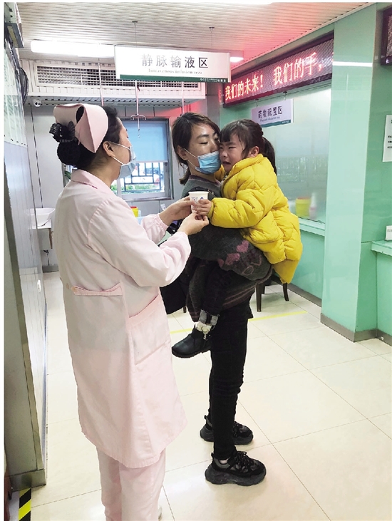 “妈妈,难受,我想喝水!”3月25日下午,在市红十字医院雾化室,一个小女孩刚做完雾化吸入,想要喝水漱口。小女孩的妈妈在整理东西腾不出手,于是鼓励小女孩自己去倒水喝。但孩子毕竟年纪小,加之刚刚做完雾化嘴里难受,“哗”的一下,顿时哭了起来。当班护士杨汝瑶看到了这一幕,赶紧倒了一杯水向女孩走去,微笑着,将水杯递去。“快谢谢护士姐姐!”“谢谢!”小女孩糯糯的谢谢声中包含了满满的医患温情。