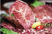 没点横膈膜就等于没有吃烤肉。厚切成蝴蝶状的横膈膜带来的饱腹感更强烈。一头牛身上的横膈膜只有2公斤左右,可以说非常稀有!烤横膈膜默念三遍秘诀:“千万不要烤老了。” 烤好的横膈膜既有柔软的脂肪和浓郁肉味,又有丰富的汁水,蘸点味增酱,鲜美充斥着嘴巴,让人越吃越欲罢不能。