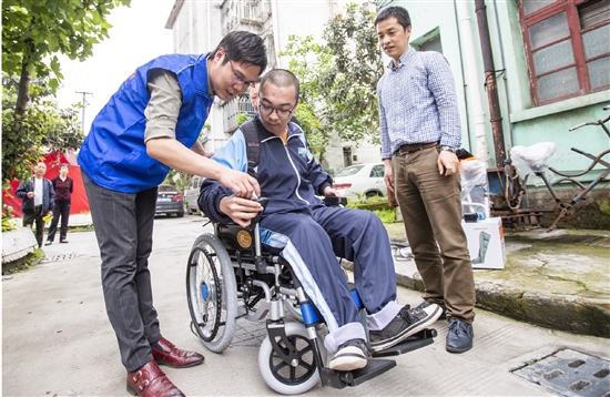 昨日,市残联康复部工作人员带着技术人员和一系列辅助器具,来到郑俊杰家中,上门提供无障碍设施安装服务。