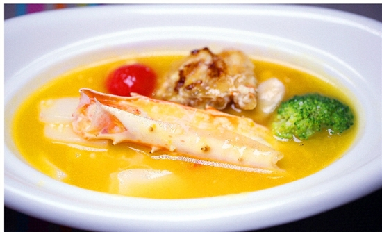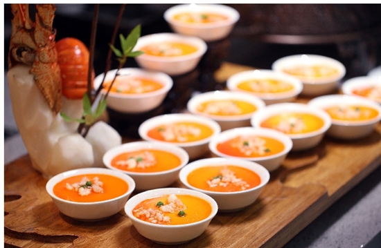 平常被大家视为自助餐厅鸡肋的热菜,在这次改版后让人爱到不行。由婚宴的大厨轮流值班掌勺,每个品类每次只炒一小锅,每锅吃完了再重新现做,完全是酒宴菜品的水准,随意选择都不怕踩雷。龙虾虾汤露、碳烤松叶蟹、龙虾芝士焗饭、葱油带子、葱油跳鱼、香煎野生大黄鱼、手抓羊排、鲍汁鹅掌……看着满眼的美食,已经口齿生津。来来来,再往前挪挪,精心烹制几个小时的甲鱼汤、浓汤鲍鱼片、乌鸡汤鲜美无比又在向你招手。每一口都能喝到食材真实的味道,和婚宴上喝过的分位汤水一模一样。静香的中国胃使她头也不回地奔向面食区,拉面、米面、粉丝、米线4种面条供她挑选,煮好面条后加入高汤再加入排骨、牛肉等浇头,一碗香味四溢、佐料豪华的面条就诞生了。要不是志哥拦着今晚的自助行,静香就提前交代在这一碗碗面条里了!
