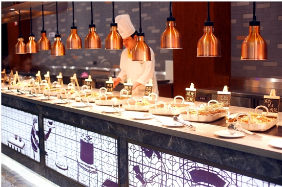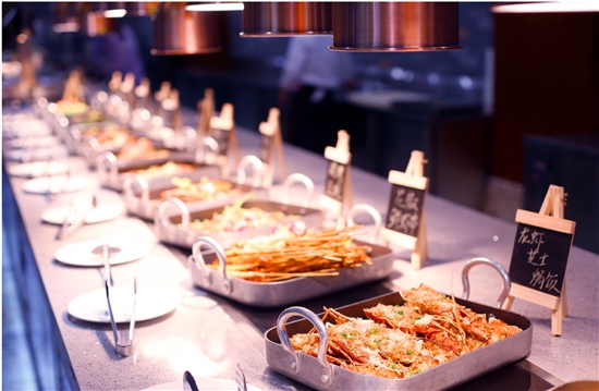 位于一楼的新版自助餐厅,进门就能感受到星级酒店的气派,整体格调走的是简约欧式风,高端大气,明亮通透,一大长排的明档,拉近了食材烹饪与美食享用的距离。华丽夺目的水晶吊灯,则把大堂演绎得雍容华贵。统一色调的桌布上摆放着整齐的餐具,没有丝毫冗余,一桌一椅,服务生安静有礼轻声细语,无不让人感慨细节处的用心。不论是追求情调的浪漫两人约会,还是其乐融融的家庭聚餐,或是高规格的商务用餐,都能在此寻到一席之地。