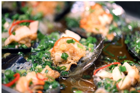 海螺、花螺、蛏子、青口贝、雪蛤、花蛤……都是活养在海鲜池里,食客们可以现点现捞现煮,你问我有多新鲜?看看海鲜池壁上越狱的各种螺,就能知道鲜活的它们有多强的求生欲了吧。品种太多,也就不一一介绍了。不过新鲜的大海螺必须打卡,螺肉肥硕带有韧劲,用牙签轻轻一挑就溜出来,蘸上些许酱油,很是鲜美。还有最近的网红高压锅生蚝也能现场烹饪。啵姐从生蚝捞起放入高压锅内就一直吞着口水耐心等待,呲一声开了锅盖后迫不及待地撬开了生蚝壳,每一只都带着饱满的肉质。如果说,这里的高压生蚝与外面满大街的有啥不一样,那就是,这里采用的全是可以直接生吃的刺身级的生蚝,厉害吧!