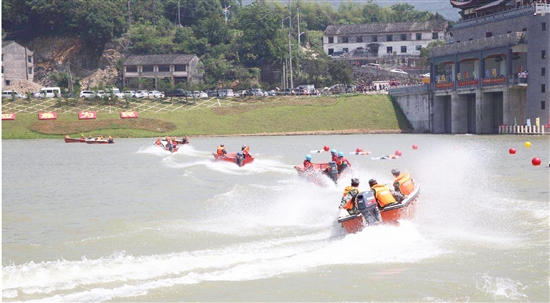 冲锋舟抢险救援、综合救援……6 月5 日,代号“安澜·2019”防汛应急演练在高楼镇滩脚堰坝举行。演练模拟台风登陆场景,开展应急预案响应、地质灾害点群众避险转移与安置、水利工程抢险、冲锋舟抢险救援、综合救援、翻舟自救及人员救援比武等多个科目应急演练,提高防汛抢险队伍实战能力,确保温州地区台风多发季节安全度汛。
