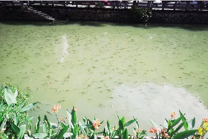 塘河水面突现密集鱼群