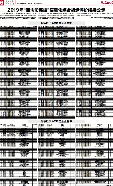 2019年“亩均论英雄”信息化综合初步评价结果公示