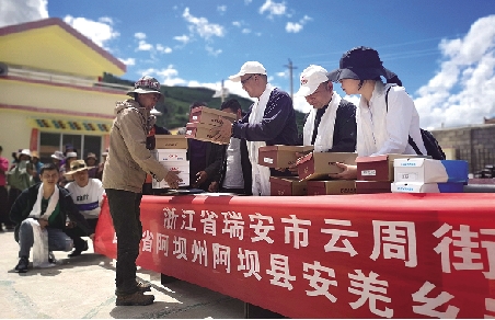 “瑞安到阿坝路途遥远,加上高原反应,感觉身体很疲惫。但是一到阿坝州所在地,看到在阳光下一直守着我们到来的那一张张黝黑的脸,我感动到眼角湿润。”云周街道商会会长林昌敏动情地说。