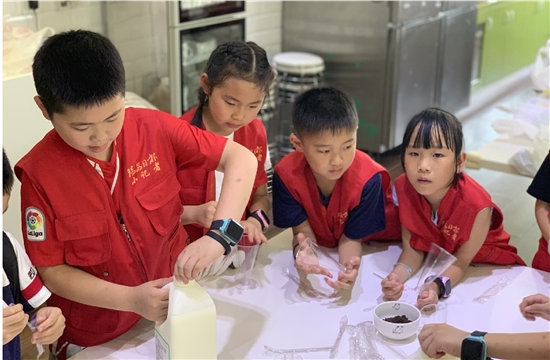 参观完智能化的生产线,小记者们在工作人员的带领下开展了DIY自制酸奶活动,将工业园刚出产的新鲜酸奶和各式各样的甜品配料随心组合。小记者们变身“小馋猫”,开心地品尝着自己做的美味酸奶。随后,他们还观看了牛奶知识科普动画片,对牛奶的生产和营养有了进一步的了解。